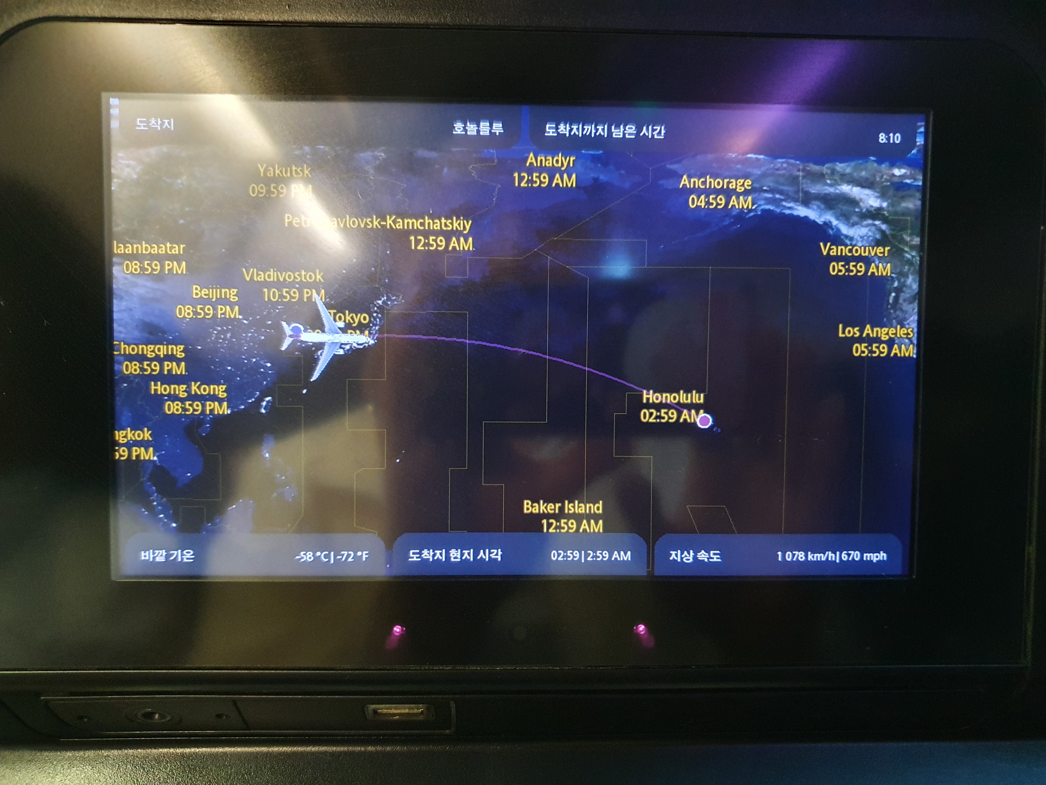 비행 시간은 갈 때는 8시간30분 걸렸는데