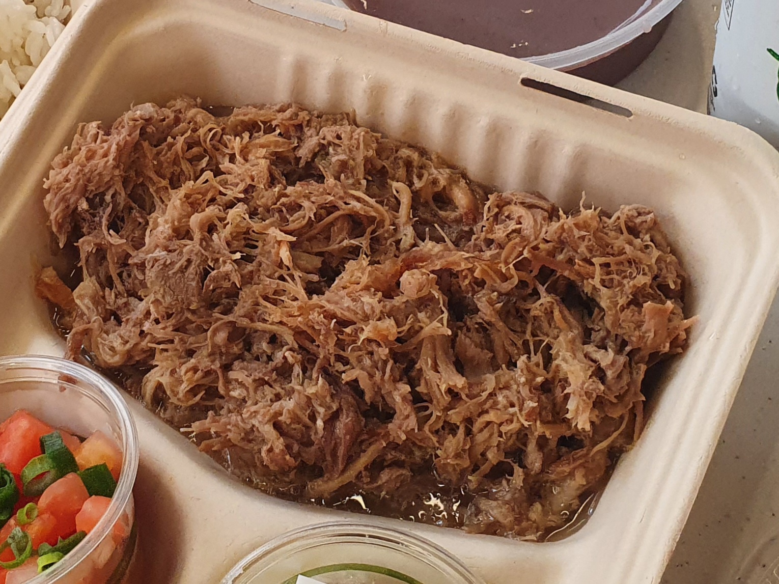 고기를 잘게잘게 찢어놔서 씹는 느낌도 안 나요.